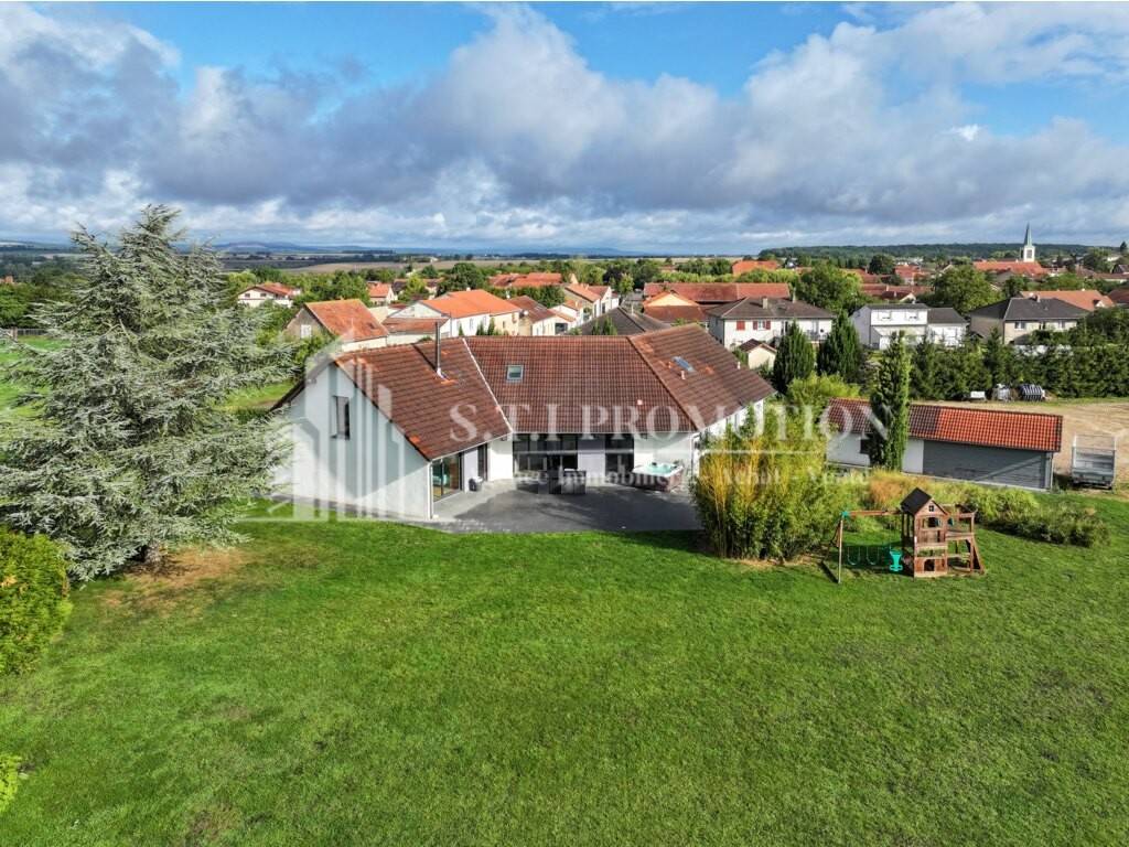 EXCLUSIVE' A rare and confidential property, in the heart of a verdant setting. Just 4 minutes from Lorraine TGV station, in a calm, intimate and completely preserved environment, come and discover this superb architect-designed house with generous volumes, designed to offer exceptional living comfort and perfect harmony with the surrounding nature. Built on more than one hectare of fully enclosed and wooded land , this property offers 245 m2 of living space (401 m2 of floor space) and provides breathtaking panoramic views of the greenery from each of its rooms, creating a unique, soothing and privileged atmosphere, ideal for lovers of space, tranquility and high-end amenities. Exceptional potential for a professional project This property also stands out for its strong potential for entrepreneurs and independent professionals , thanks to its vast usable land, its large courtyard allowing parking for around twenty vehicles, its garages, its carport and its full basement, offering the possibility of creating a warehouse, a hangar, storage spaces for machines, tools, materials or utility vehicles, while maintaining a high quality of life on the same site. Bright, airy spaces and remarkable living areas Upon entering, a vast 26 m2 room announces the beautiful volumes of the house and invites exploration. The living room, over 50 m2, bathed in light, offers a warm and friendly atmosphere, enhanced by a high-end Tulikivi wood stove, ideal for cozy evenings. The open-plan kitchen, fully equipped and functional, is complemented by a second independent kitchen, very practical for everyday use or for entertaining. The whole property opens onto a large tiled terrace with a jacuzzi, perfect for enjoying sunny days in an intimate and green setting. A comfortable and perfectly arranged sleeping area An elegant corridor lined with Burgundy stone leads to three spacious bedrooms, a bathroom with bath and shower, separate WC, a pantry, a laundry room and a motorized garage of approximately 40 m2, offering a particularly sought-after single-level comfort. Upstairs, recently completed, you will discover a vast landing area, three additional bedrooms, a room that can accommodate a dressing room and a bathroom, offering an ideal space for children, guests or a large family wishing to preserve everyone's privacy. A full basement with multiple possibilities The full basement includes three large rooms as well as two cellars, offering numerous possibilities for development: storage, workshop, gym, recreation room or professional activity. High-end amenities and modern comfort The house benefits from excellent features: high-performance insulation, secure electric gate, centralized electric roller shutters, second garage, carport, water softener, well of approximately 4,000 liters, high-end anthracite grey aluminum joinery with thermal break, large courtyard allowing parking for about twenty vehicles and a very attractive property tax of 780, all without any work to be planned thanks to quality construction and careful finishes. Strategic situation Ideally located, the property offers quick access to motorway networks, while being in the immediate vicinity of nursery and primary schools, after-school care and amenities, making it a rare property combining nature, accessibility and comfortable living. Practical information Price: €749,000 (Fees payable by the seller) Date of diagnosis: 10/09/2025 Estimated annual energy expenditure for standard use: between €3,290 and €4,500/year (average energy prices indexed to the years 2021, 2022, 2023) Primary energy consumption: 164 kWh/m2/year For more information on the potential risks of this property, consult the Géorisques website: www.georisques.gouv.fr . For more information or to arrange a visit, contact us now at 06.07.40.20.28 or mylene@stipromotion.fr This unique property will appeal to both a large family seeking space and nature and an entrepreneur wishing to develop their business on an exceptional site. STI Promotion Your real estate expert in Tiercelet and the surrounding area (buying, selling, renting) RCS Briey no 898375860000019