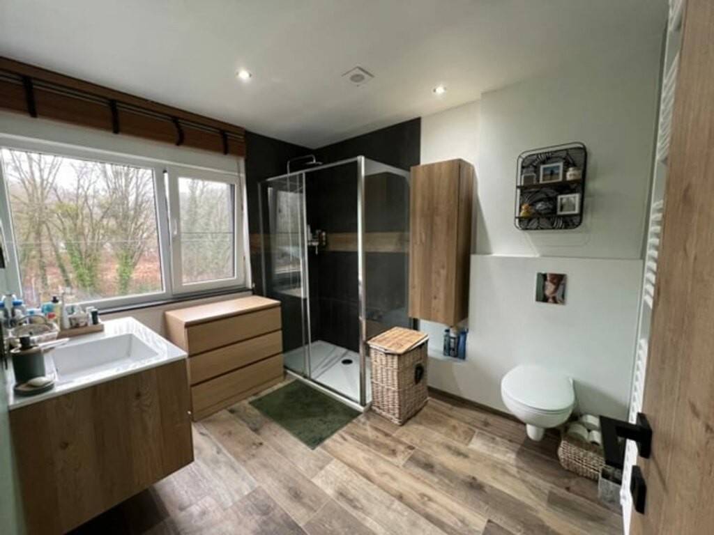 Idéale pour un premier achat, elle conviendra parfaitement pour une personne seule ou pour un couple et se compose au rez-de-chaussée d'un sas d'entrée, un séjour avec cuisine ouverte de 35 m² spacieux et convivial ainsi que d'une terrasse orientée sud-est, parfaite pour un gain de luminosité lors des beaux jours. Vous bénéficierez également de la présence d'un bureau bien aménagé, idéal pour du télétravail et pouvant aussi servir de chambre. A l'étage, vous accéderez à une superbe suite parentale de 26 m² (pouvant aussi le cas échéant être divisée en 2 chambres ou 1 chambre + 1 bureau) et à une spacieuse salle de douche moderne et confortable. Au -1, vous retrouverez un ancien garage utilisé comme espace de stockage (vélos, matériel, etc), un coin buanderie ainsi que la chaufferie et la citerne à mazout. Vous avez également accès à une cour (sous la terrasse).