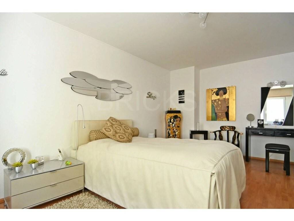 A beautiful, large bedroom; a bathroom with bath, shower, washbasin and WC.