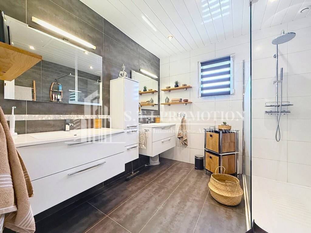 À l’étage, le demi-niveau dédié à l’espace nuit propose quatre belles chambres lumineuses et confortables, ainsi qu’une salle d’eau moderne, parfaite pour répondre aux besoins de toute la famille.