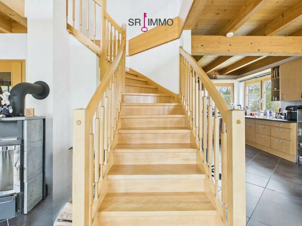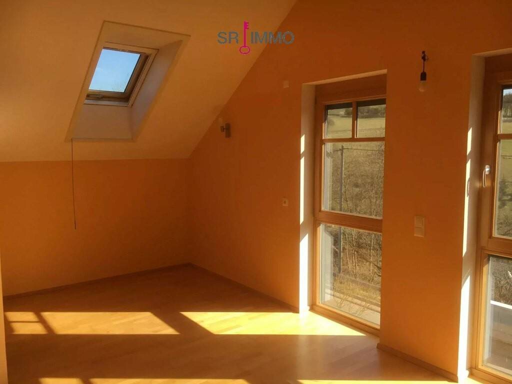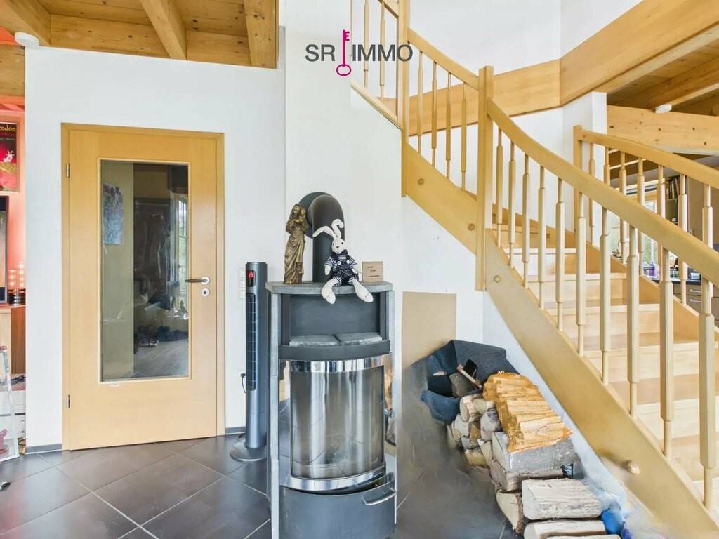 Das Haus wurde auf einem massiven Untergeschoss errichtet und erstreckt sich zudem über ein Erdgeschoss sowie ein Dachgeschoss. Im Erdgeschoss erwartet Sie ein großer, offener Wohnbereich mit integrierter Küche und einem lichtdurchfluteten Wintergarten. Von hier aus haben Sie direkten Zugang zur großzügigen Terrasse, die mit einer schönen Aussicht zum Entspannen und Verweilen einlädt. Ergänzt wird das Raumangebot auf dieser Ebene durch ein Badezimmer mit Dusche sowie einen praktischen Abstellraum. Ein Kaminofen im Wohnzimmer sorgt zusätzlich für eine besonders gemütliche Atmosphäre.