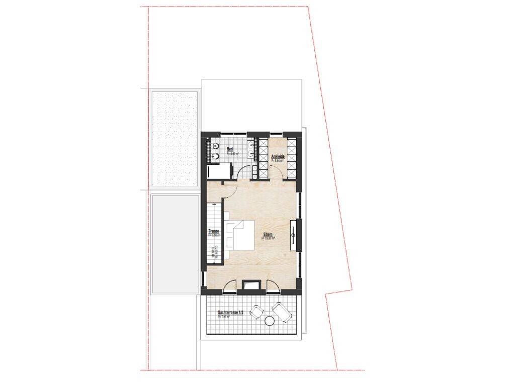Raumaufteilung: Erdgeschoss: Eingangsbereich Gäste-WC Hauswirtschafts- / Technikraum Offene Küche, helles Wohn- und Esszimmer Große Terrasse mit direktem Zugang zum Außenbereich