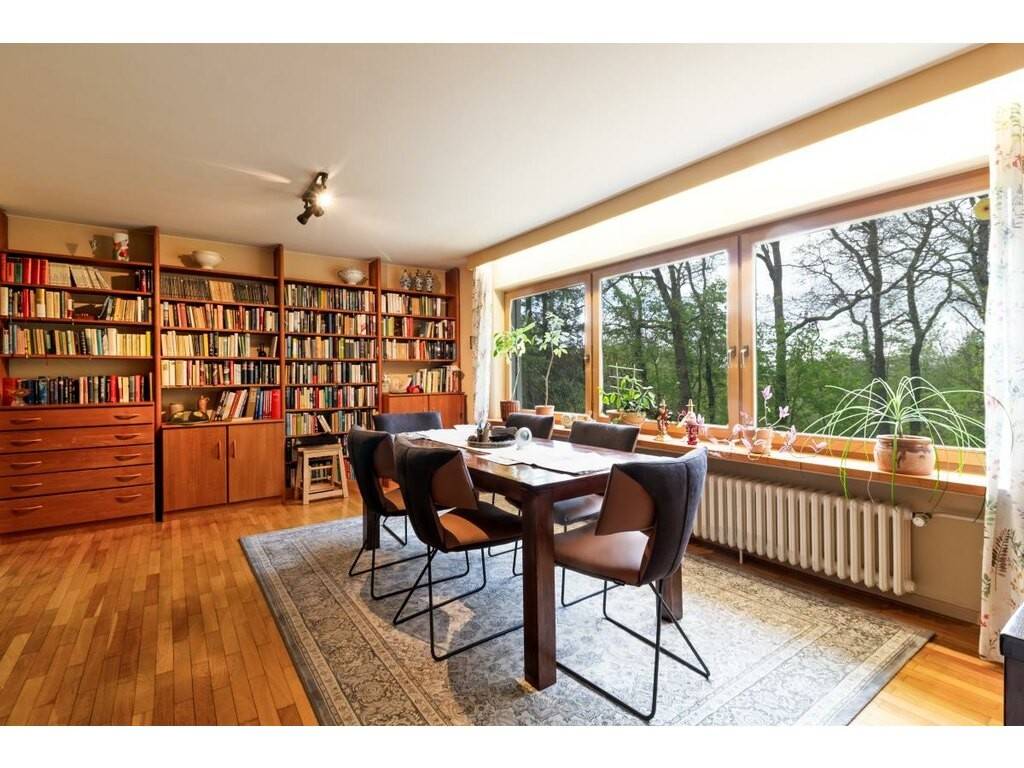 Mittelpunkt des Erdgeschosses ist der großzügige Wohn-Essbereich von ca. 40 m² mit Ausgang auf die großzügige Terrasse bzw. Balkon von ca. 20 m² und in den schönen Garten. An den Wohnraum ist das helle Eßzimmer von ca. 15 m² angegliedert.