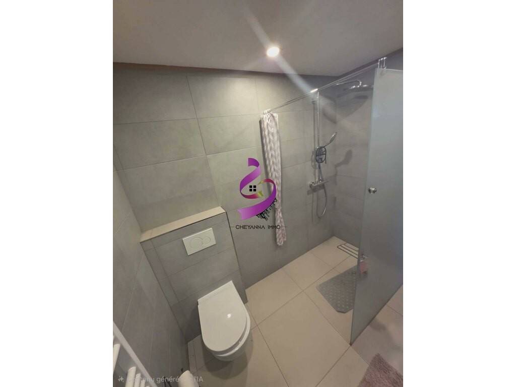 Rez-de-chaussée : hall d'entrée raffiné, WC séparé, séjour lumineux ouvrant sur un balcon, débarras, salle de bains avec WC.