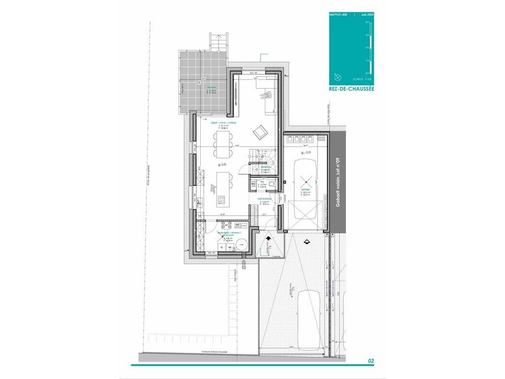 LOT 10: Maison unifamiliale en bande sur un terrain de 6,37 ares avec une surface habitable de +/- 131 m2 et une surface totale de +/-166m2 comprenant: