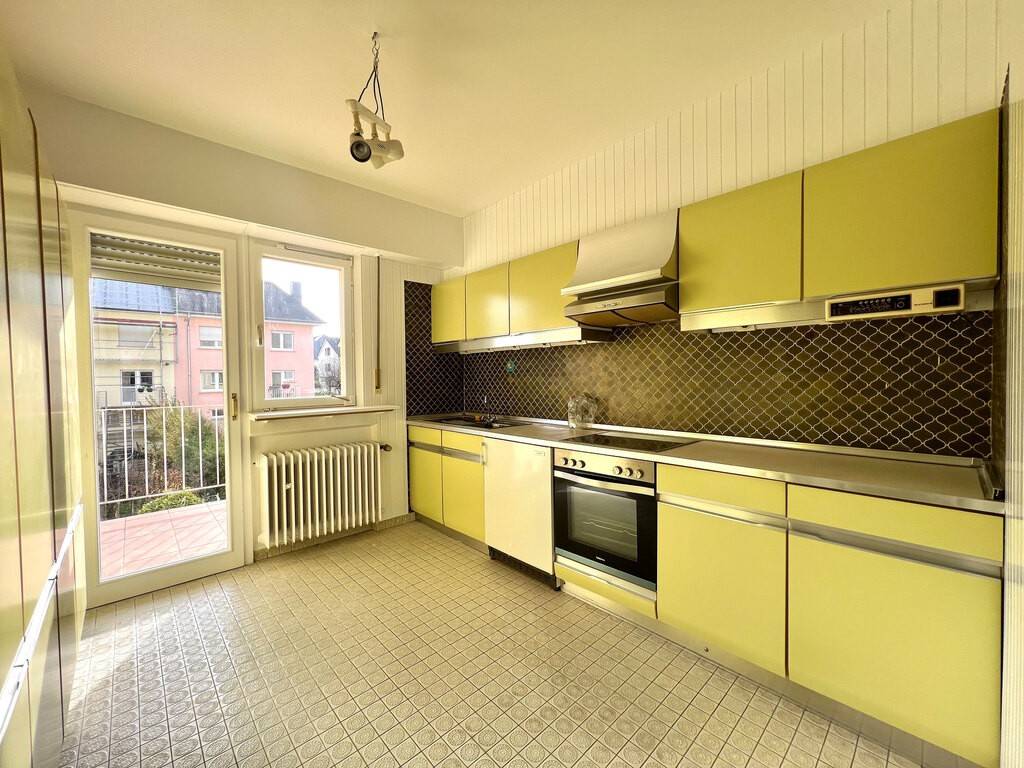 Diese Wohnung im 1. Stock einer Residenz mit nur 3 Einheiten hat eine Fläche von ± 90 m² und verfügt über 2 Balkone, einen privaten Garten, einen Keller und eine geschlossene Garage. Ideale Lage in der Cité Grand-Duc Jean, in der Nähe von öffentlichen Verkehrsmitteln und allen anderen Annehmlichkeiten.