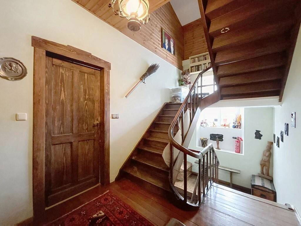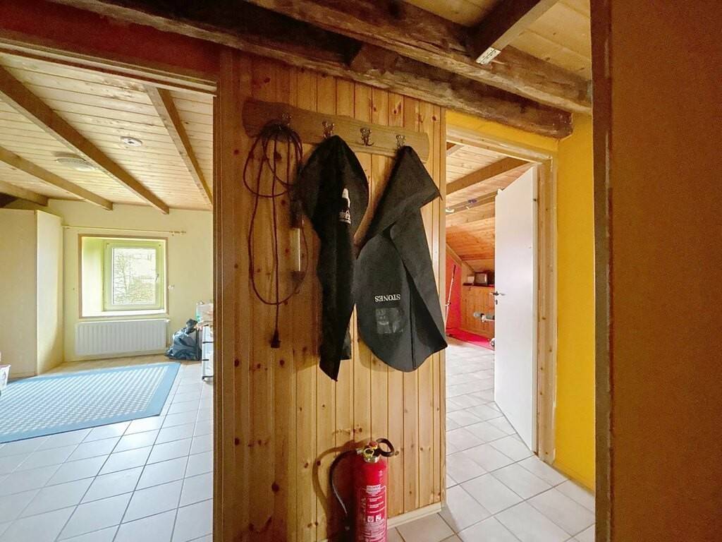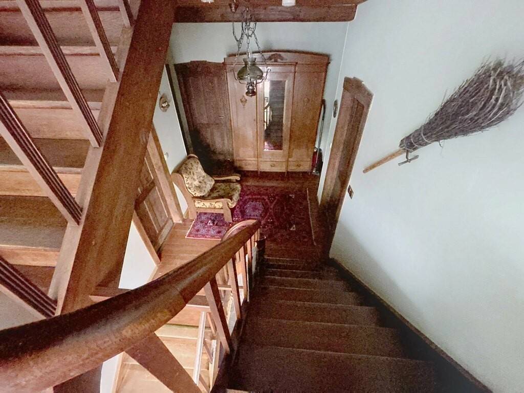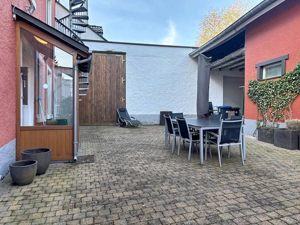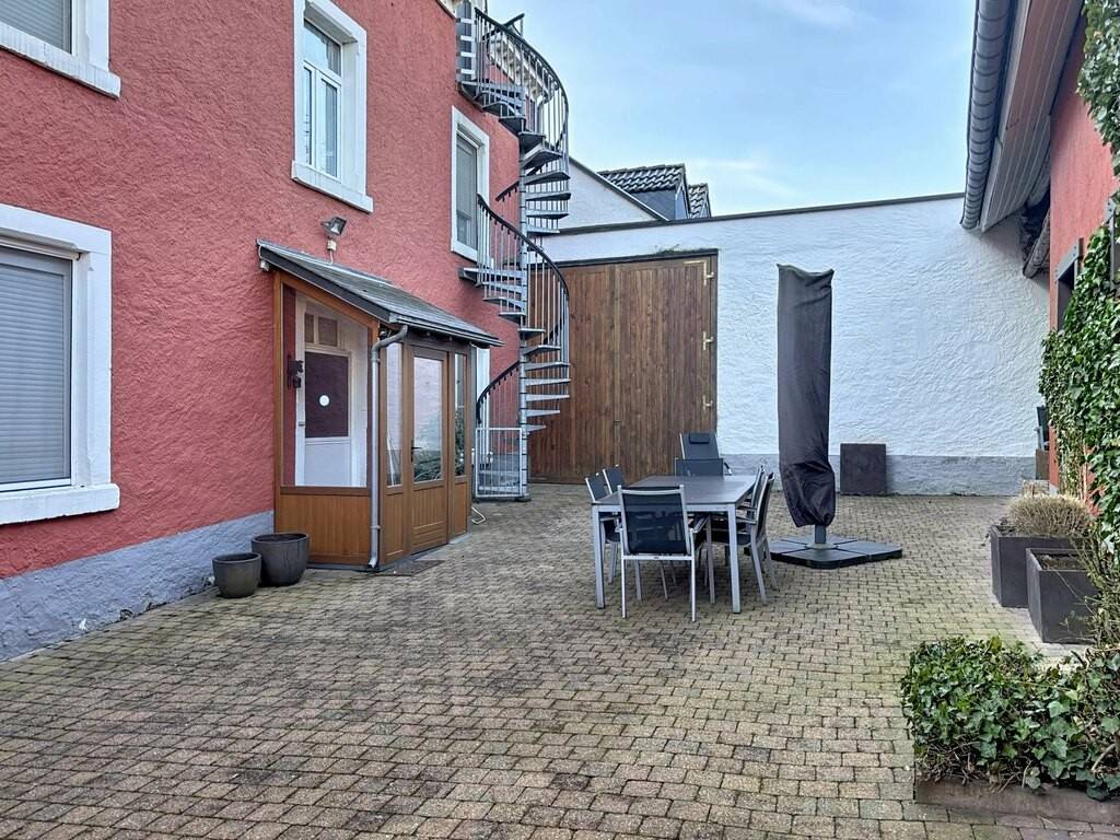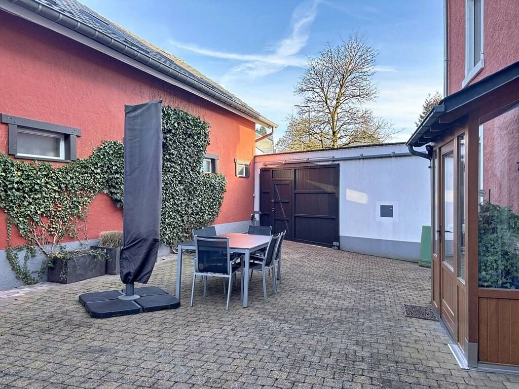 Zur Immobilie gehören außerdem ein großer Innenhof, ein Gartenhaus, ein weitläufiger Garten sowie Kellerräume. Technisch überzeugt das Haus durch ein Schieferdach, PVC-Fenster mit Doppelverglasung, eine Ölheizung, Betondecken teilweise in Kombination mit Holzelementen sowie Bodenbeläge aus Fliesen, Parkett und Laminat.