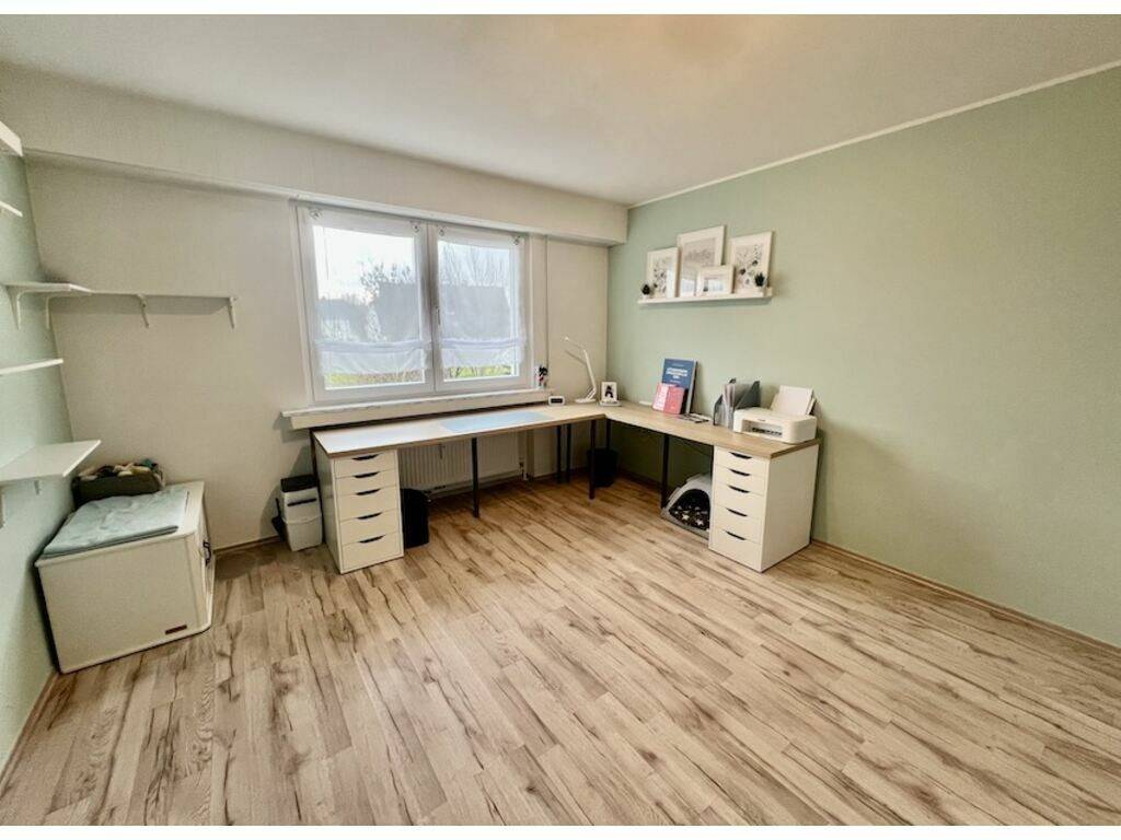 Eingangshalle (+-12m2), Waschküche (+-2m2), Abstellraum (+-2m2), sehr helles Wohnzimmer (+-30m2) mit Zugang zur Terrasse (+-4,05m2 / Südwest-Ausrichtung), separate Küche (2022 / Wert 20.000 Euro / +-16m2), Badezimmer (2015 / 8m2), 3 Schlafzimmer (+-16m2, 11,60m2, 14,72m2), davon eines mit Terrasse (+-2,34m2 / Nordost-Ausrichtung)