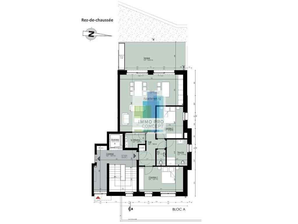 • Surface habitable / 94.60 m² (hors terrasse) : cet appartement dispose de 2 chambres de 12.18 m² respectivement 16.00 m²