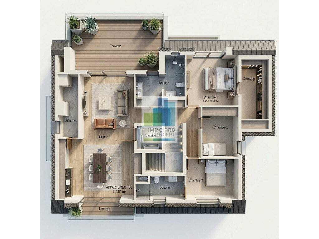 • Surface habitable / 113.96 m² (hors terrasses): Ce bien dispose de 3 chambres dont une suite parental avec salle de douche privative et une chambre avec un bel espace dressing.