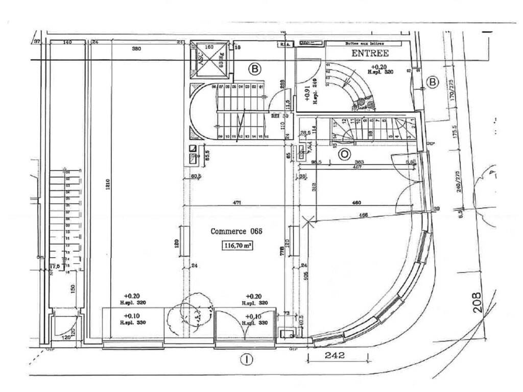 - superficie: 190m2 dont 116m2 local commerce au rez et 74m2 bureaux etc. au sous-sol -1