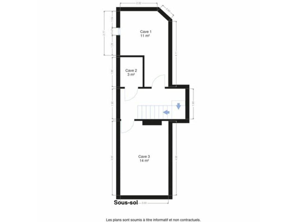 L'étage dispose d'une superficie de 65m² tandis que le sous-sol comprend 35 m² de caves.