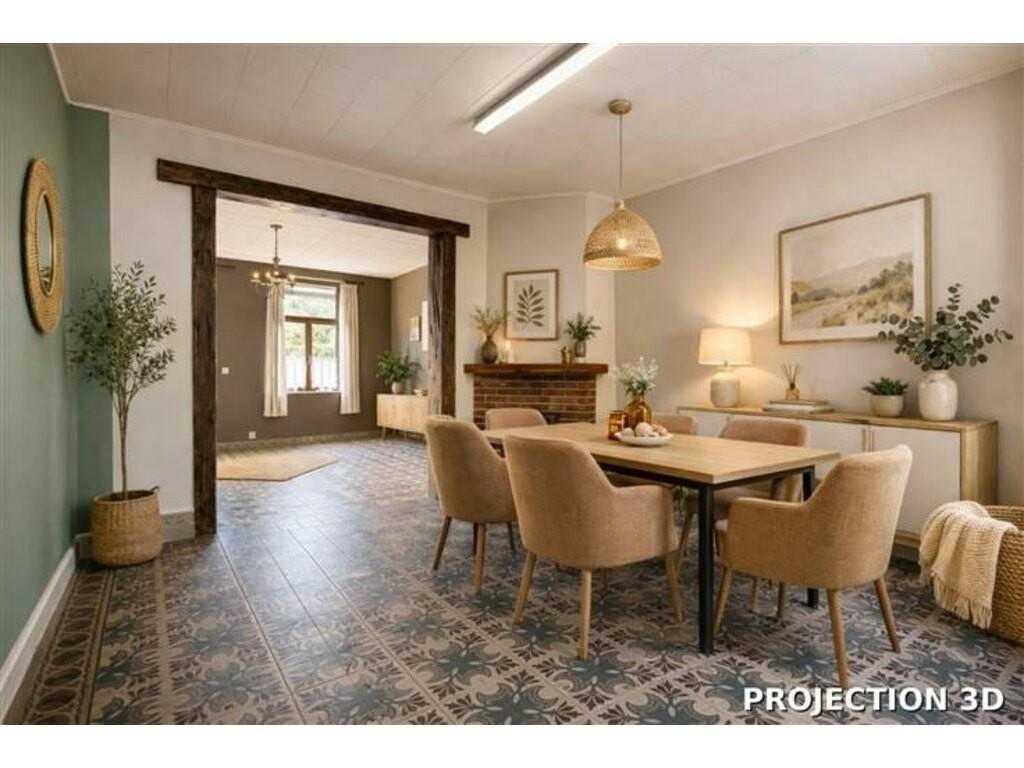 Charmante maison avec beau potentiel à Jemelle. Située sur l'artère principale de Jemelle, cette habitation de rangée à proximité immédiate des commerces, des transports et de toutes les commodités du quotidien, présente un excellent potentiel pour un investissement ou pour un premier achat. Le bien se compose d'un salon et d'une salle à manger en enfilade, d'une cuisine donnant accès sur l'extérieur ainsi que d'une salle de bain. Le premier étage vous offre deux chambres spacieuses et lumineuses tandis que l'étage supérieur vous-en offre une troisième ainsi que la possibilité d'en créer une supplémentaire ou une pièce polyvalente. Un espace cave, idéal pour le stockage, vient parfaire cet ensemble. À l'extérieur, vous profiterez d'un espace agréable avec remise, parfait pour le rangement ou la création d'un coin détente. Côté confort, l'installation électrique est conforme, le chauffage est assuré par un poêle à mazout et alimenté par une cuve de 1200 L. Possibilité de se raccorder au gaz de ville (plan d'ORES déjà établi) Étant à rénover, ce bien offre de belles perspectives d'aménagement et de valorisation pour son futur acquéreur. À découvrir sans tarder ! Sale Details - Honoraires à la charge: Non communiqué