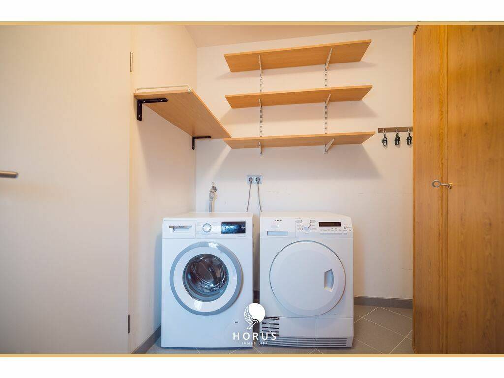 Die Wohnung setzt sich wie folgt zusammen: - Ein Eingangsbereich (+/-4m²) - Eine Einbauküche, offen zum Wohn- und Esszimmer (+/-33m²) - Ein Schlafzimmer (+/-14m²) - Ein Duschbad mit WC - Ein separates WC - Ein Abstellraum mit Waschküche (+/-6m²)