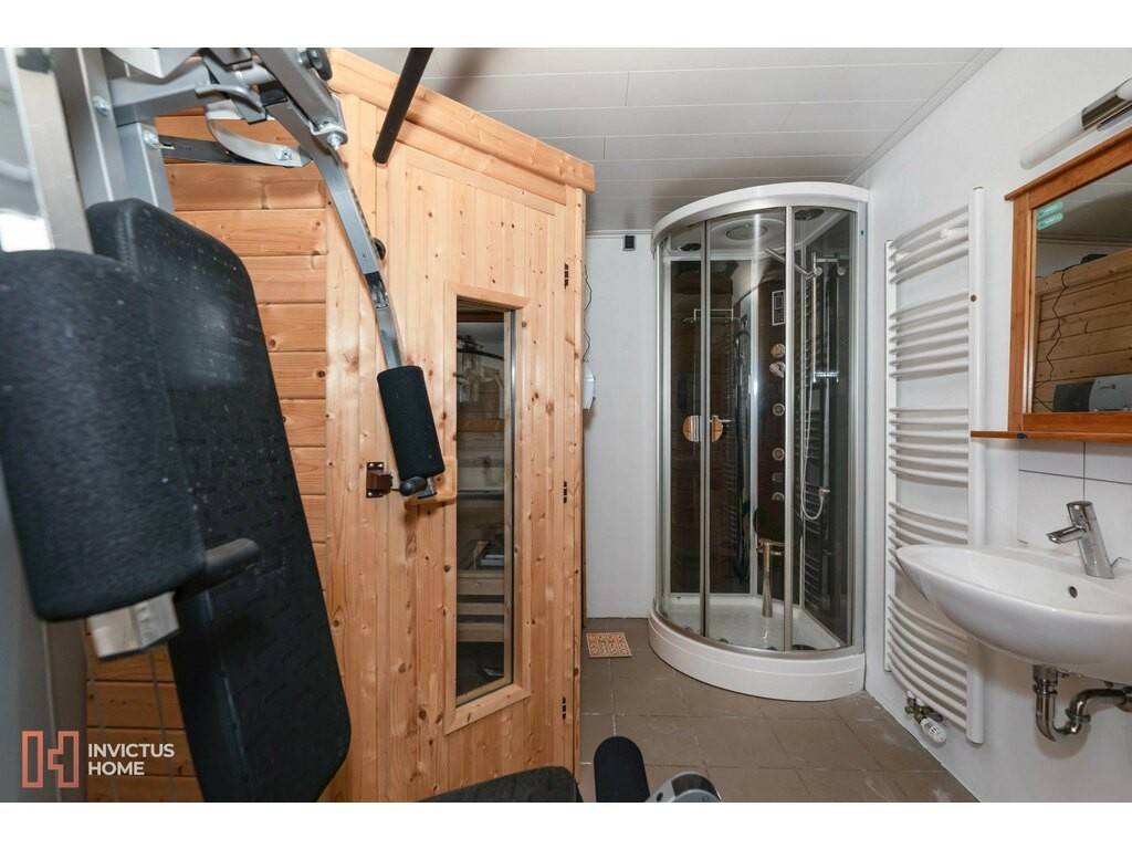 Im Untergeschoss befindet sich ein Wellnessbereich mit Sauna und Dusche, eine Waschküche, eine innere Doppelgarage, ein Heizungsraum... Im Außenbereich können drei weitere Autos geparkt werden.