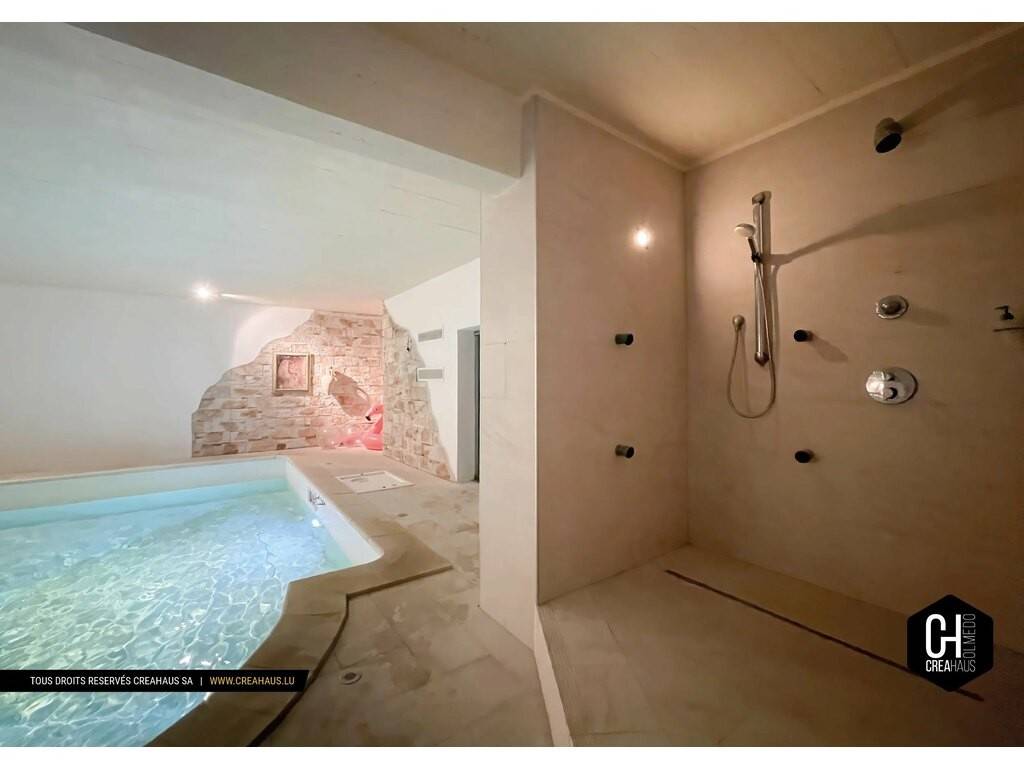 Gebaut im Jahr 1995 am Ende einer Sackgasse verfügt die Immobilie über eine Gesamtfläche von +/- 435 m², davon 180 m² Wohnfläche, verteilt auf drei Ebenen und bietet großzügige Volumen sowie bemerkenswerten Wohnkomfort.