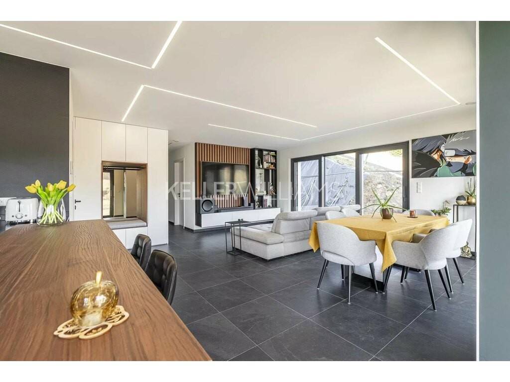 - Spacious, bright living area with a fully equipped custom kitchen, including a wine cellar