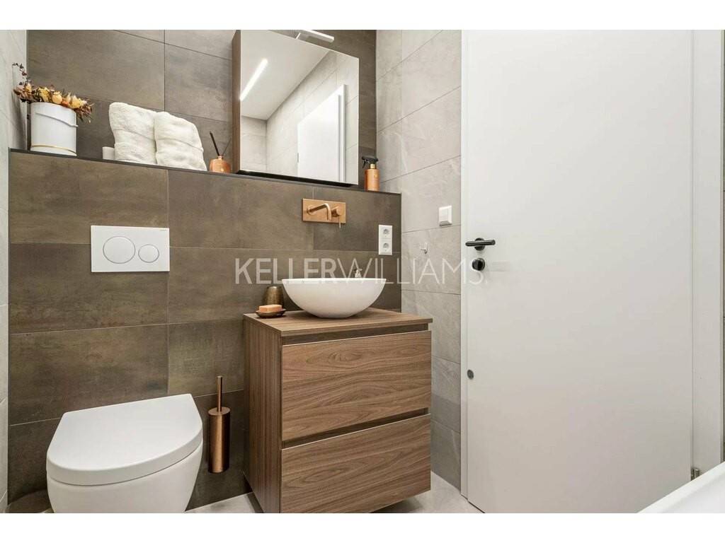 Situated on the first floor of a two-unit contemporary duplex, it boasts an AB energy rating, ensuring low operating costs and lasting value.