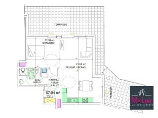 MAGNIFIQUE APPARTEMENT DE STANDING 57,94 M2 CARREZ, 1 CHAMBRE, LIVING, SALLE DE BAINS + TERRASSE 49,96 M2 !!!, CAVE, 1 PARKIING INTERIEUR