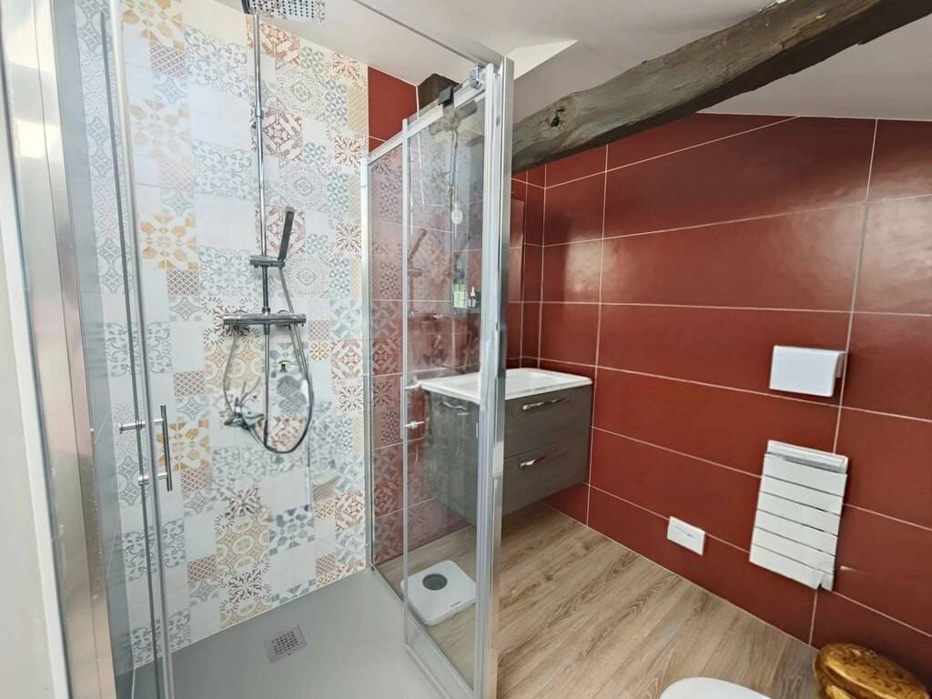 - Une magnifique suite parentale de 30 m² avec poutres apparentes, sa propre salle de bain et ses toilettes, ainsi qu'un bureau, parfait pour le télétravail ou vos moments de tranquillité.