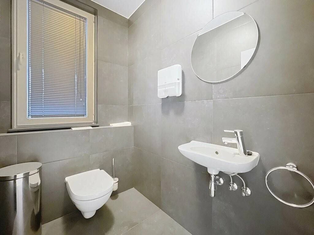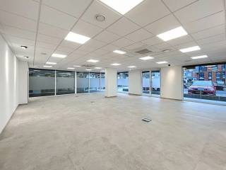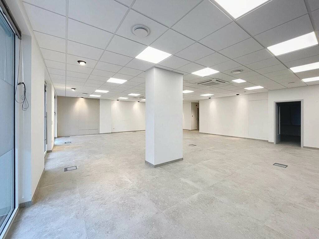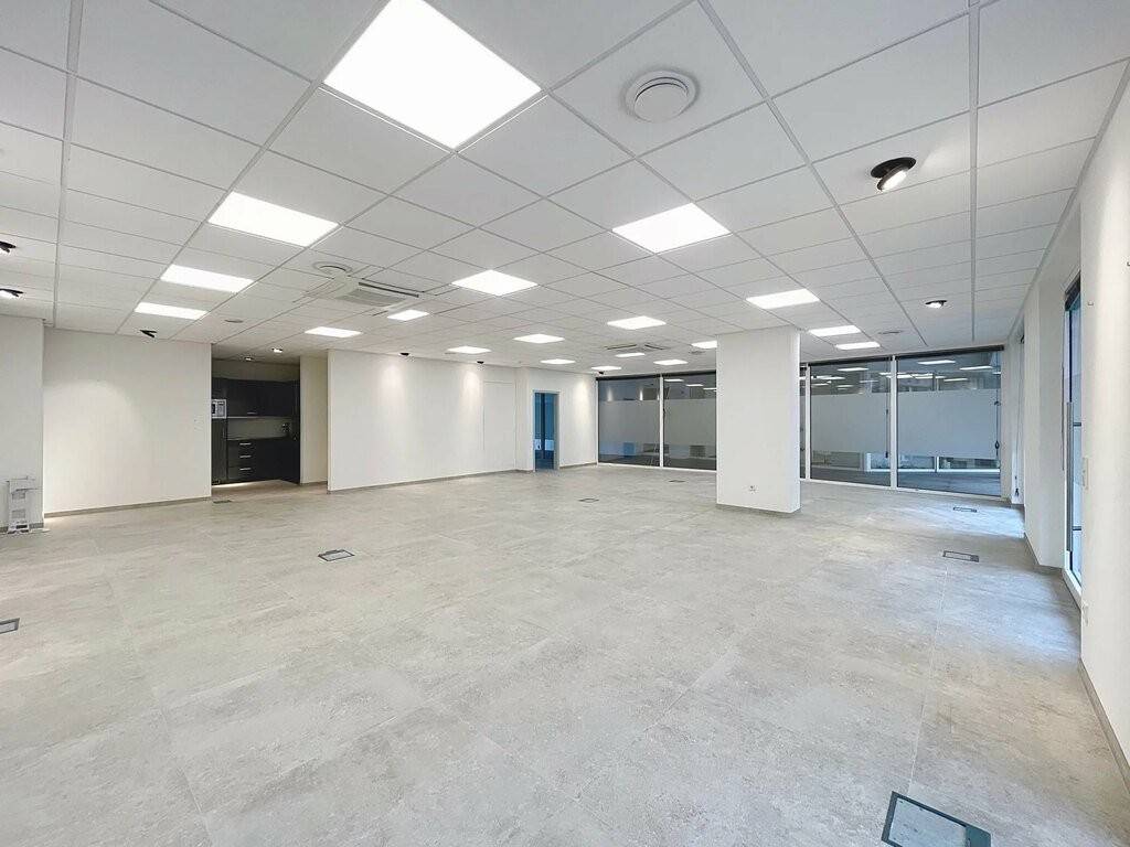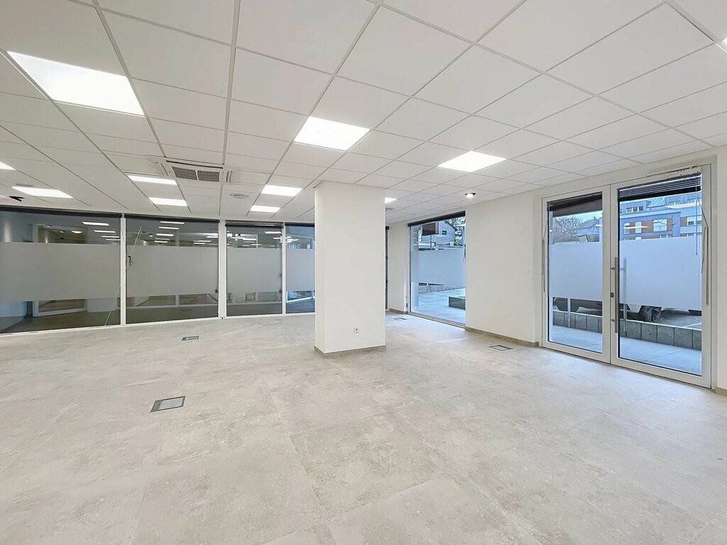 Die Gewerbefläche befindet sich im Erdgeschoss und verfügt über eine Gesamtfläche von 125,25m² welche aus einem großen, offenen Raum, einem separaten Büro, einer Eibauküche und zwei separaten Toiletten besteht.