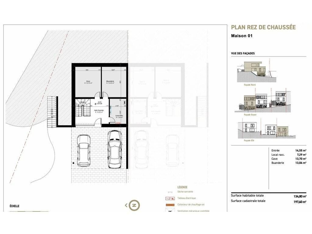 Dieses Haus mit einer Fläche von +/- 186 m2 wird ausgezeichnete Umweltbestimmungen mit einem Energiepass der Energieklasse A-B-A erfüllen. Die innere Konfiguration ermöglicht eine große Vielseitigkeit je nach Ihren Bedürfnissen.