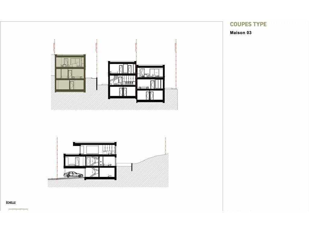 EFFEKT bietet ein Projekt von drei Einfamilienhäusern mit zeitgenössischem und minimalistischem Design in der Gemeinde Schieren auf einem Grundstück mit einer Gesamtfläche von 11,25 Ar an.