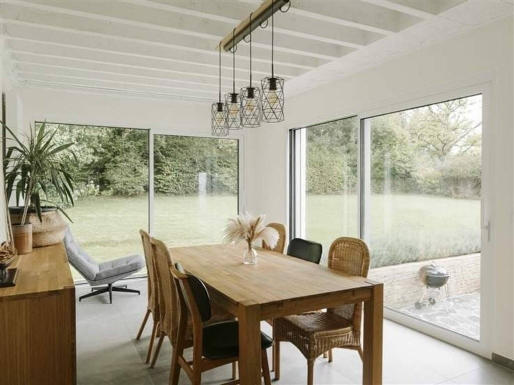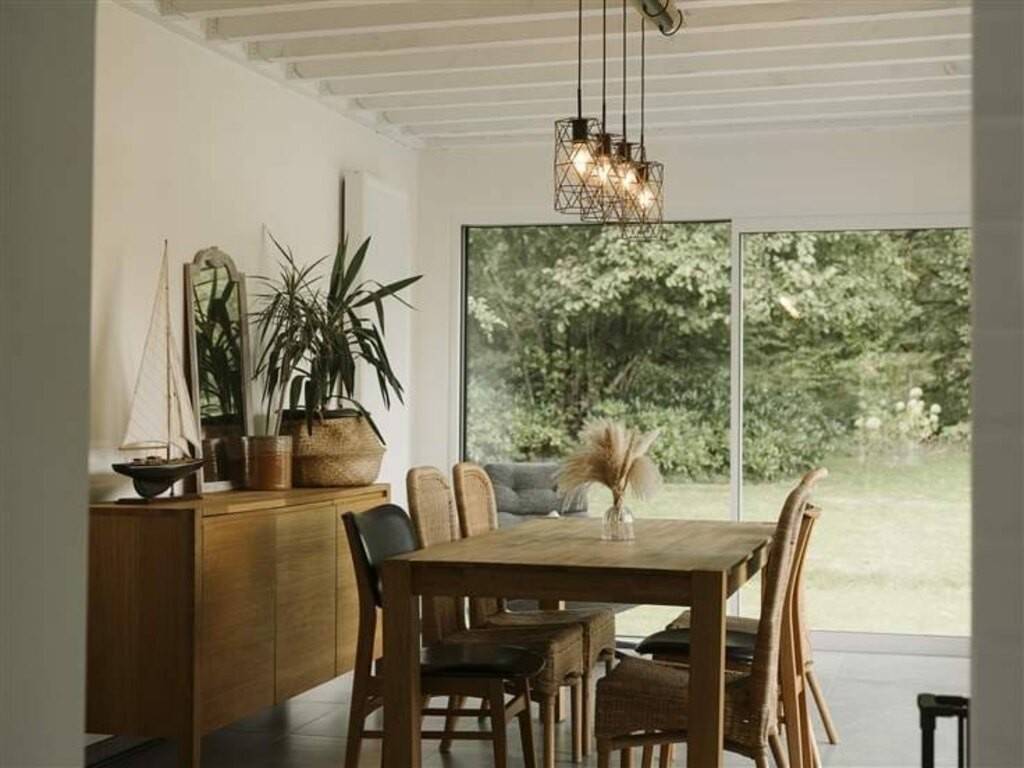 Au bout d'un joli chemin, entrant par le hall d'entrée, vous découvrirez un séjour tourné vers l'extérieur avec ses grandes baies vitrées disposant de volets électriques.