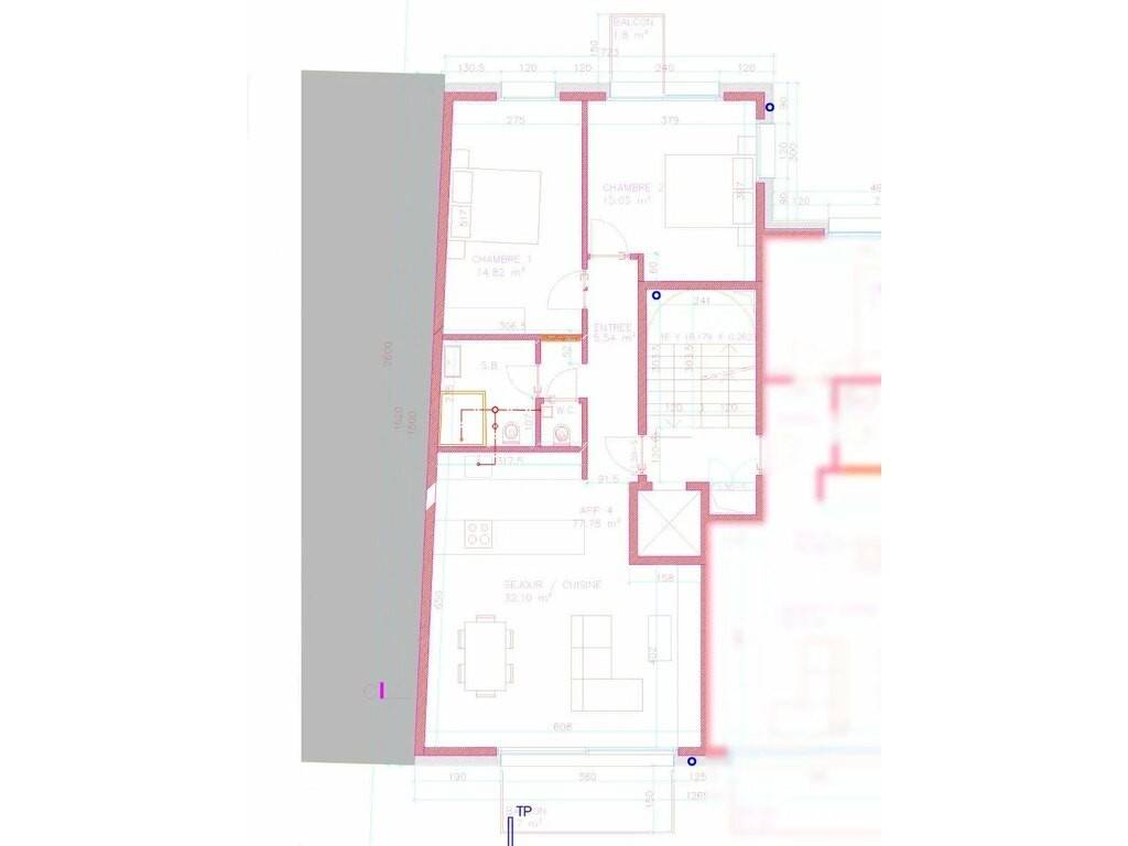 Die Wohnung Los 04 im 1. OG verfügt über eine Katasterfläche von ±77,78m² sowie 2 Balkone von insgesamt ±7,5m². Sie ist wie folgt aufgeteilt: