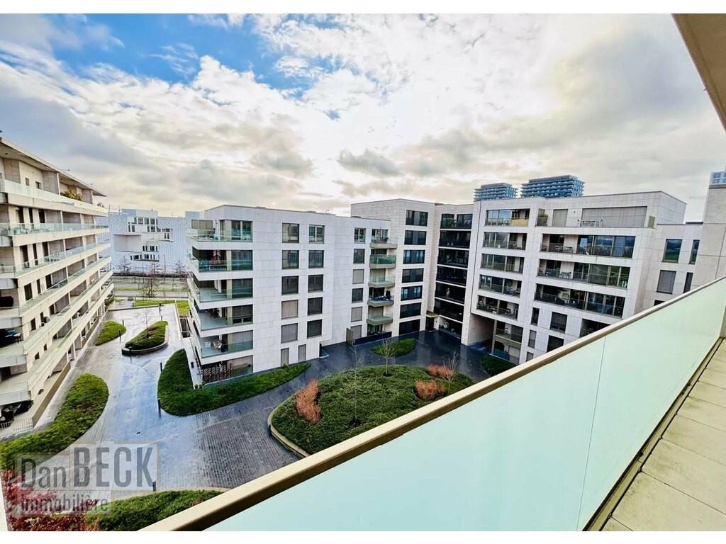 Zu vermieten, wunderschöne Wohnung von +/-68 m2 mit 2 Schlafzimmern im 5. Stock, grosse Loggia, 1 Innenparkplatz und ein Keller im neuen Viertel Cloche-d'Or in der Nähe von allen Geschäften und öffentlichen Verkehrsmitteln.