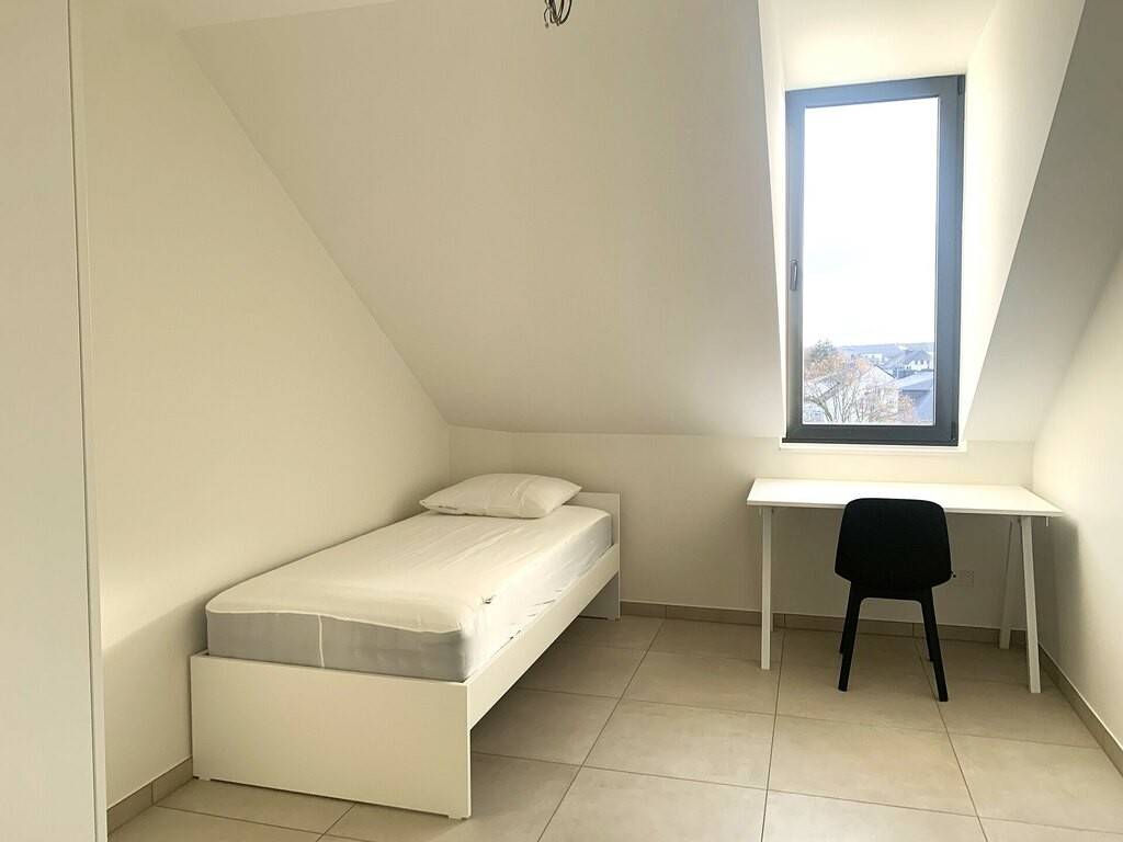 Located at 1, Rue des Champs in Bertrange, on the 3rd floor of a new residence with a lift, this furnished room of approximately 10 m² is available in a modern 84 m² apartment featuring 3 bedrooms (all currently available / flatshare possible).