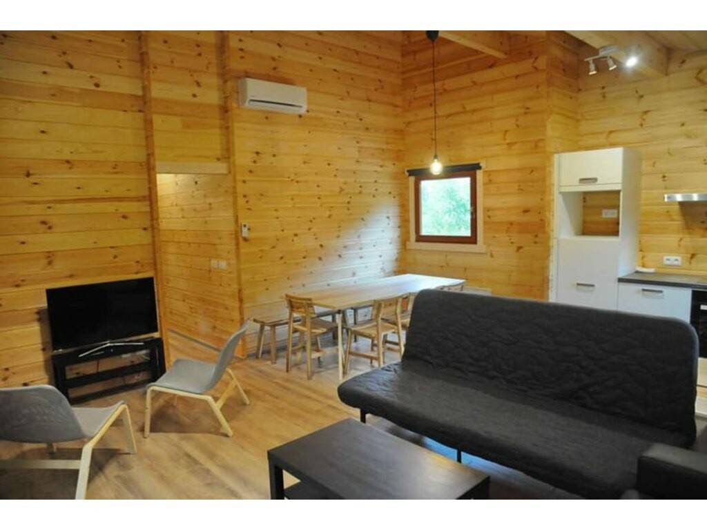 Le chalet dispose d'une salle de séjour spacieuse, avec cuisine ouverte, et d'un coin salon.