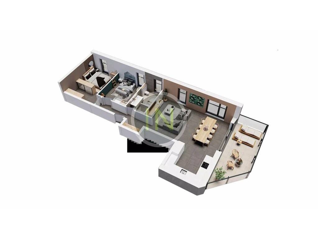 Die Wohnung ist mit einer doppelten Belüftung ausgestattet, die das ganze Jahr über für eine optimale Luftzirkulation sorgt. Das Innendesign ist sowohl elegant als auch funktional, einschließlich hochwertiger Oberflächen. Die offene Küche führt zu einem hellen Wohnzimmer, das sich perfekt für den Empfang von Gästen eignet.