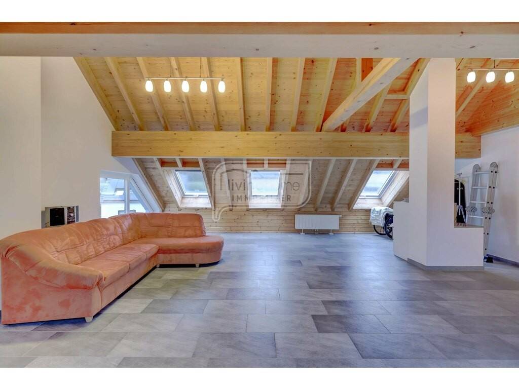 • Séjour spacieux (38,00 m²), hauteur sous plafond 3,40 m, équipé de 5 Velux avec stores et goulotte à linge