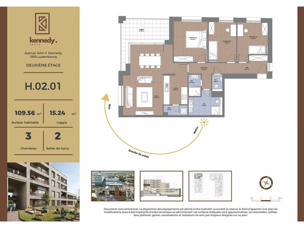 Entdecken Sie diese Wohnung von 109,56 m² Wohnfläche in Kirchberg mit einer Loggia von 15,24 m2, die zum Wohnzimmer und einem Schlafzimmer führt.