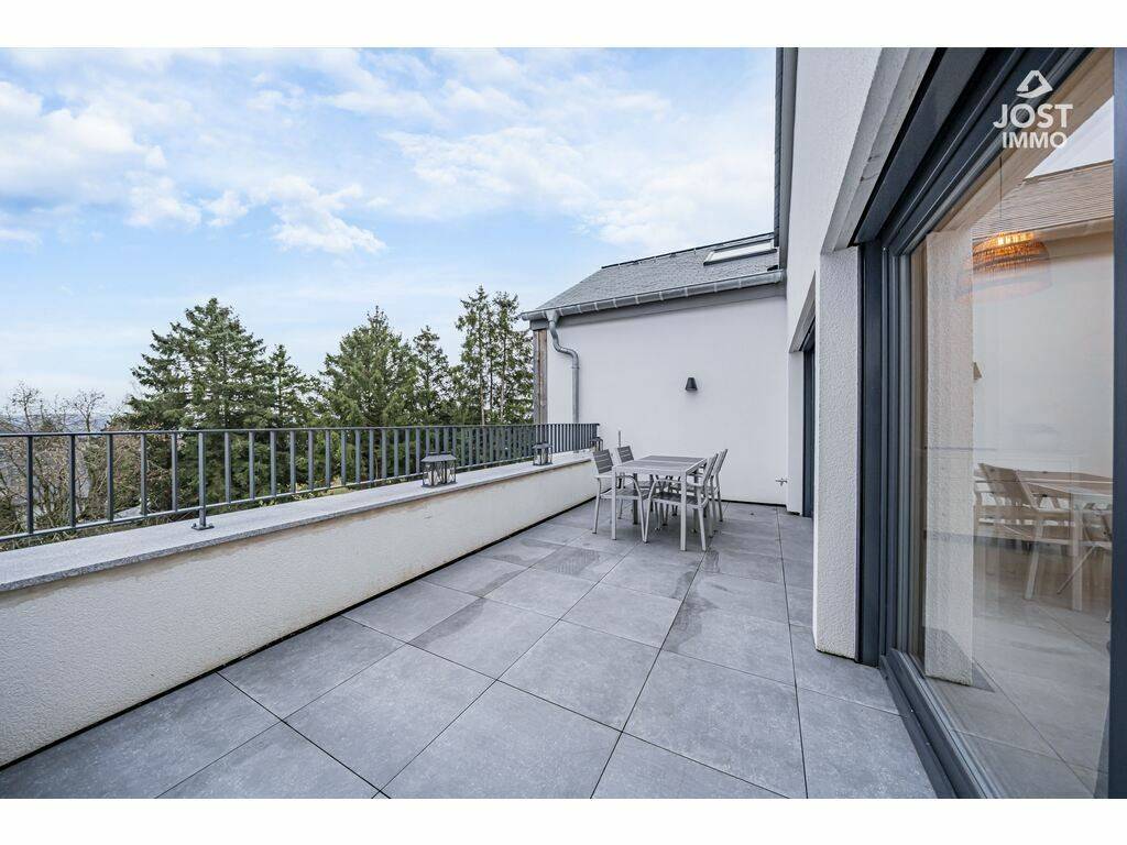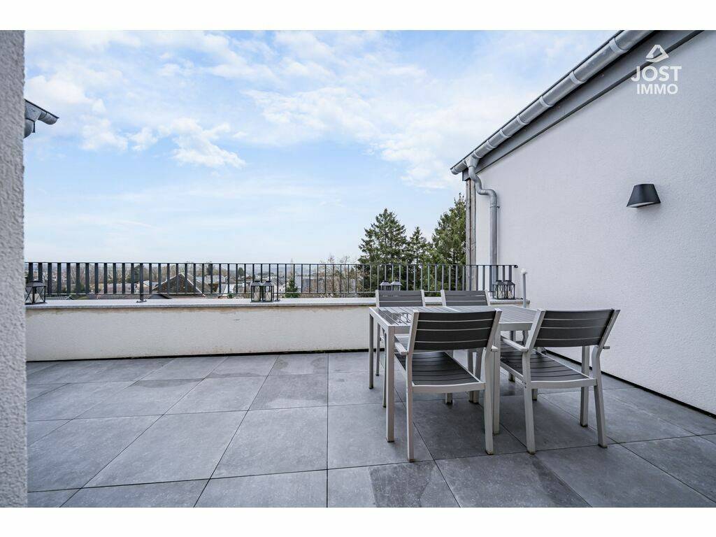 L’agence immobilière JOST Immo vous propose à la location ce penthouse exceptionnel, un appartement traversant entièrement meublé, situé au dernier étage d’une résidence récente de 8 unités dans le charmant village de Boulaide.