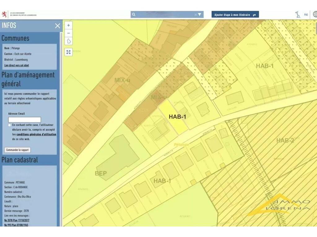 Ce terrain se trouve dans un secteur Hab-1. D'après PAG, une maison jumelée peut être érigée (sous acceptation des plans par l'Administration Communale de Pétange).