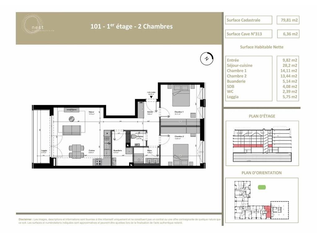 Die Wohnung Lot 1.01.2.2CH befindet sich im 1. Stock und verfügt über eine Katasterfläche von ±78,81 m², eine Loggia von ±5,68 m² und setzt sich wie folgt zusammen:
