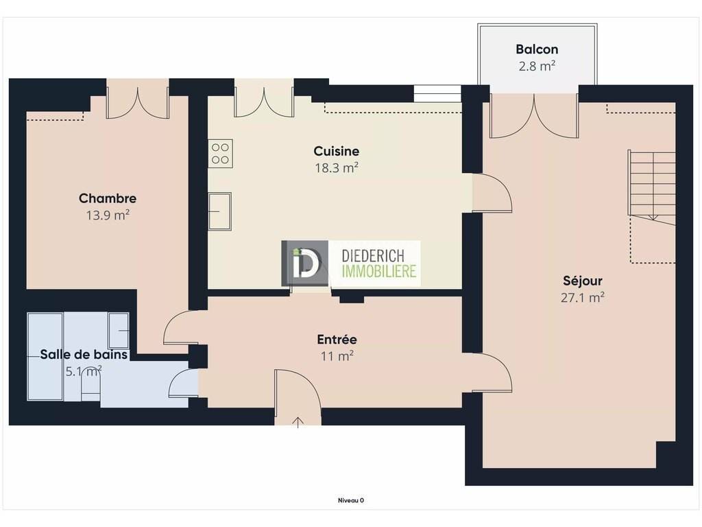 Immobilière Diederich bietet Ihnen diese wunderschöne Wohnung von ±121 m² in idealer Lage in Sanem zum Verkauf an.