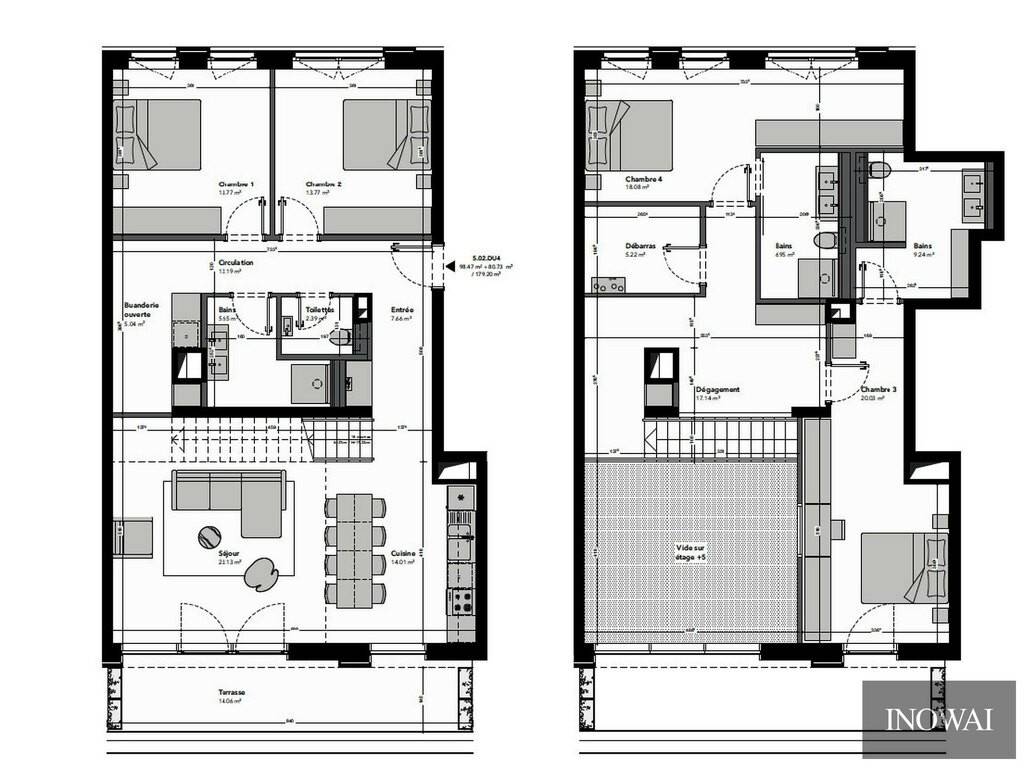 Ce duplex lot 502 situé au cinquième étage a une surface habitable de 179.20 m².