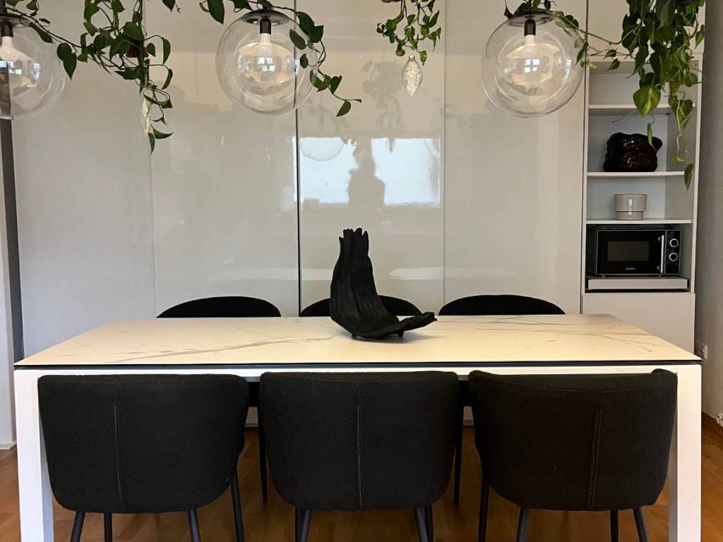 - a spacious and luminous living room of 31.5 m2, also with large windows and a high ceiling,