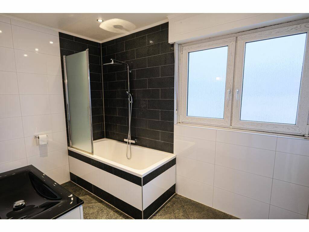 Une salle de bains séparée avec armoire mural baignoire et fenêtre de +/- 7,62 m2.