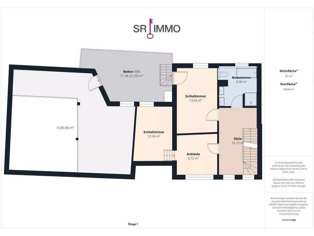 Nachweis/Vermittlung eines Immobilienkaufvertrags. Käuferprovision: 3,57 % inkl. MwSt., fällig mit notariellem Kaufvertragsabschluss.