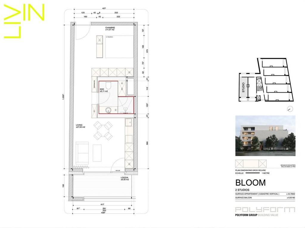 À vendre, magnifique studio de 43,78m2 (surface nette habitable) dans la résidence BLOOM en future construction.
