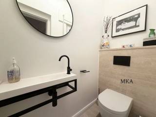1er étage : trois chambres dont une avec un dressing et une salle de bains avec baignoire, WC et deux lavabos et un petit balcon, une salle de douche avec douche lavabos, WC et le raccordement pour la machine à laver et le sèche-linge