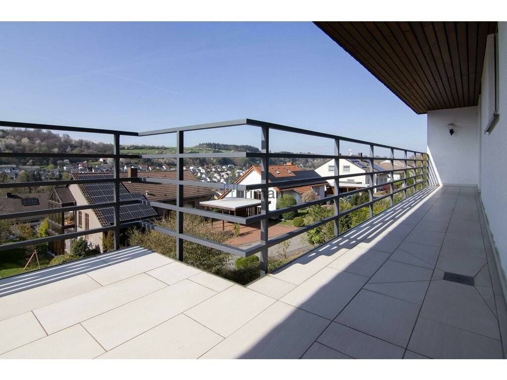 Aufteilung erste Etage: Über den komfortablen Flur erreichen Sie die offene Hauptküche, ein weiteres Wohn- und Esszimmer mit Kaminofen und Zugang zu einem zweiten Balkon sowie ein zweites Schlafzimmer welches ebenfalls Zugang zum Balkon gewährleistet. Eine Gäste-Toilette sowie ein Badezimmer mit Hydromassage-Badewanne dürfen hier nicht fehlen. Zurück im Haus schließt ein drittes Schlafzimmer mit Zugang zum Wintergarten und zur Terrasse und wunderschönem Garten diese Ebene ab. Vom Esszimmer aus gelangen Sie ebenfalls in den Außenbereich.