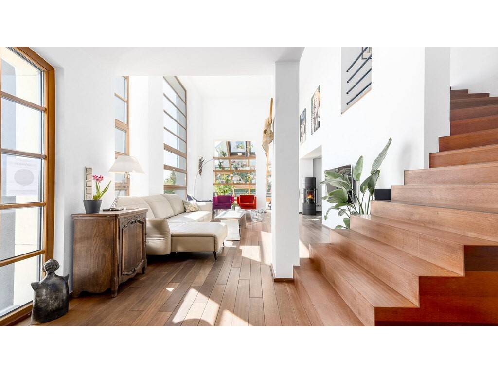 Propriété exceptionnellement lumineuse, offrant des grands espaces et des belles vues dégagées sur la vallée, ainsi qu'un grand jardin hors du commun. Idéalement situé dans un voisinage calme, à proximité des commerces, du centre-ville, du Kirchberg, de Gasperich et des principaux axes routiers. Accès à quelques mètres de l'arrêt de bus desservant la Gare centrale et le Kirchberg