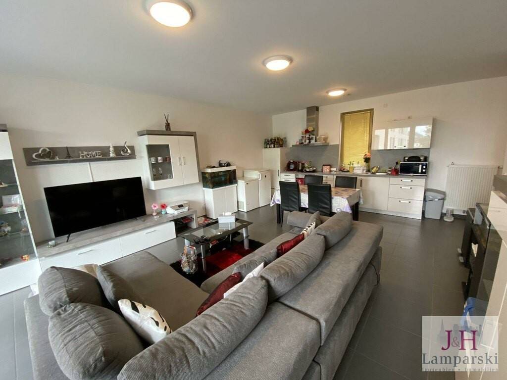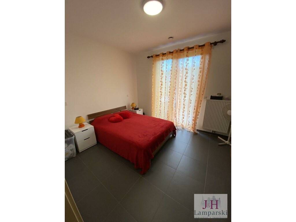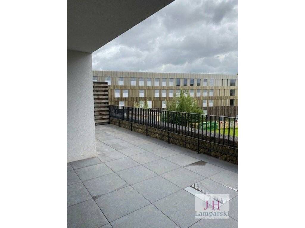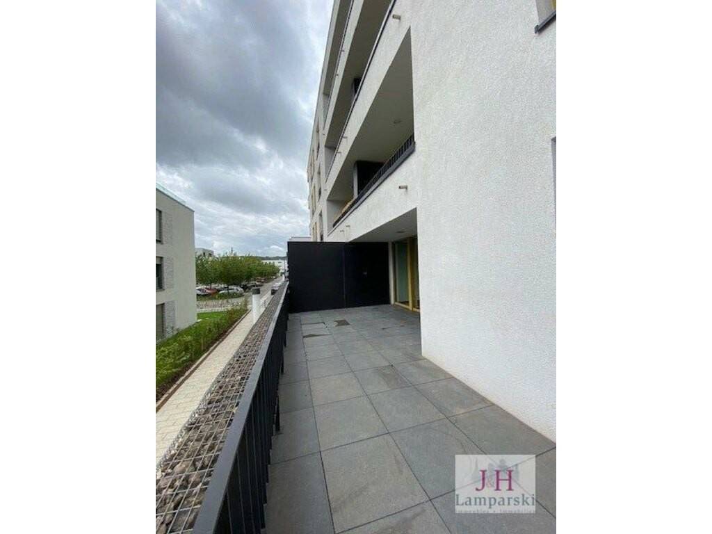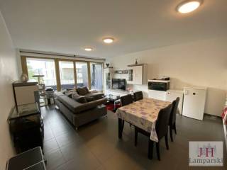 L'appartement se compose d'un hall d'entrée avec placard intégré, d'un salon/salle à manger de 35 m2 avec cuisine équipée ouverte et accès au balcon de 29 m2, d'une chambre à coucher de 13 m2 avec accès au balcon, d'une salle de douche avec WC et d'un WC séparé.