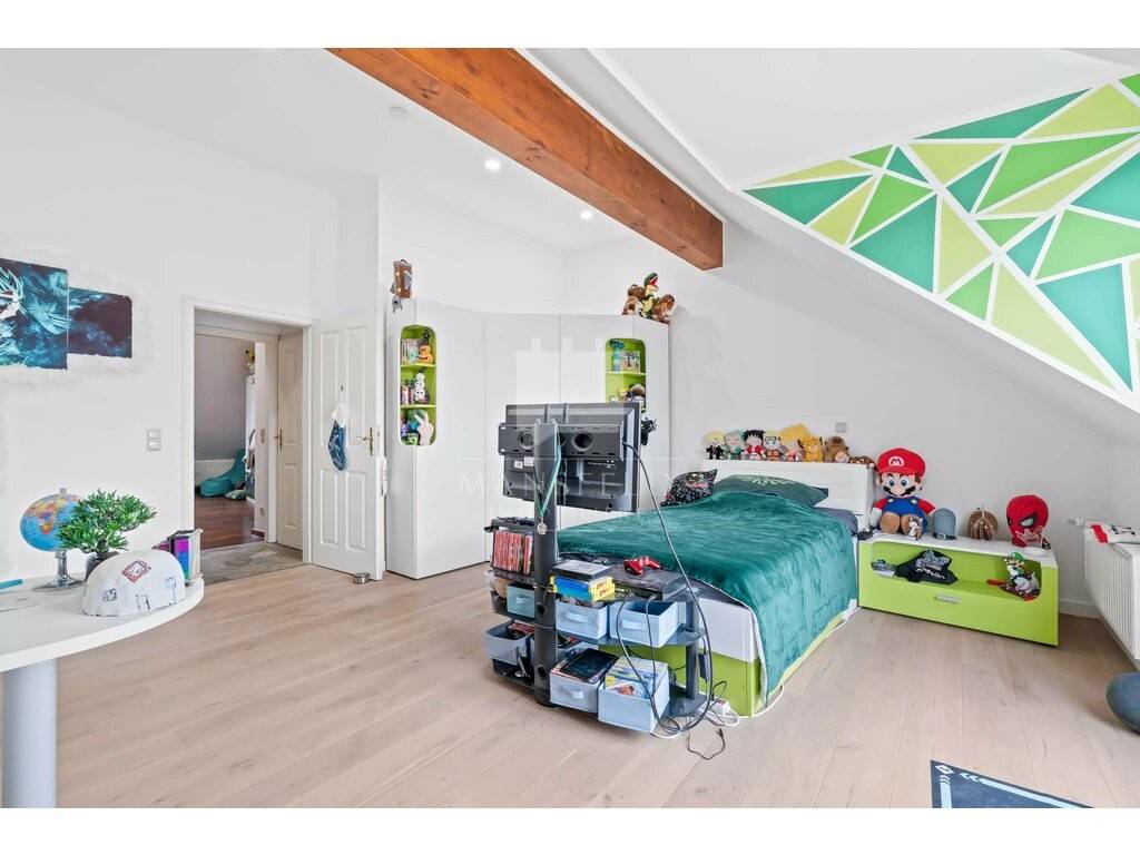 The roof is covered with natural slate and is in very good condition. Slate roofs are known for their exceptional durability, with a lifespan of at least 80 years, as well as for their excellent resistance to weather conditions and low maintenance requirements.