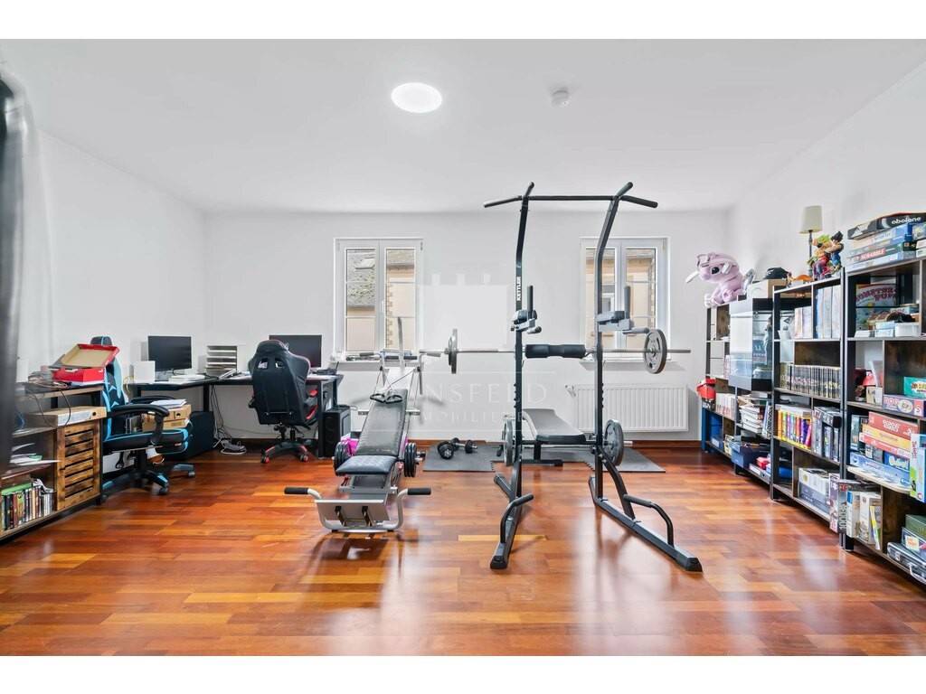 This attractive single-family house, built in 2006, is located in Medernach, just a few minutes’ drive from the Mullerthal region, also known as “Luxembourg’s Little Switzerland.” The area is well known for its beautiful natural landscapes, numerous hiking trails, and its proximity to Echternach, offering an excellent quality of life in a peaceful and green environment.